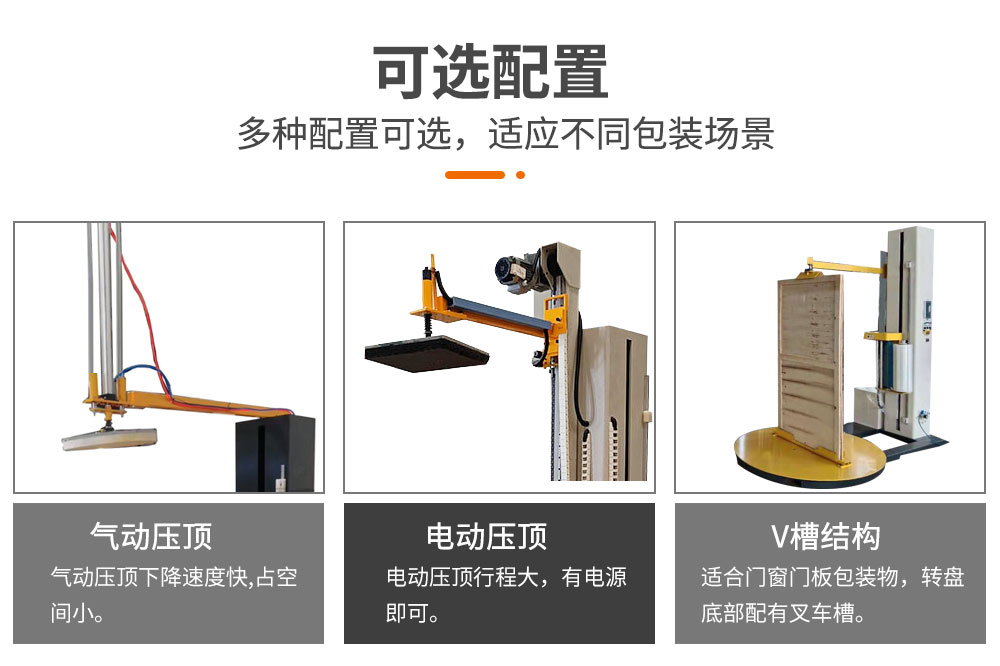 可分為氣動壓頂型托盤纏繞機和電動壓頂型托盤纏繞機