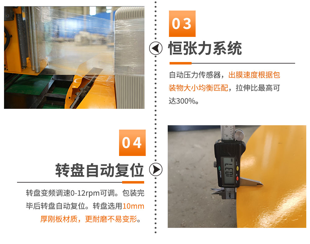 能有效避免因轉盤旋轉而導致貨物甩出。保證貨物在包裝過程中平穩。