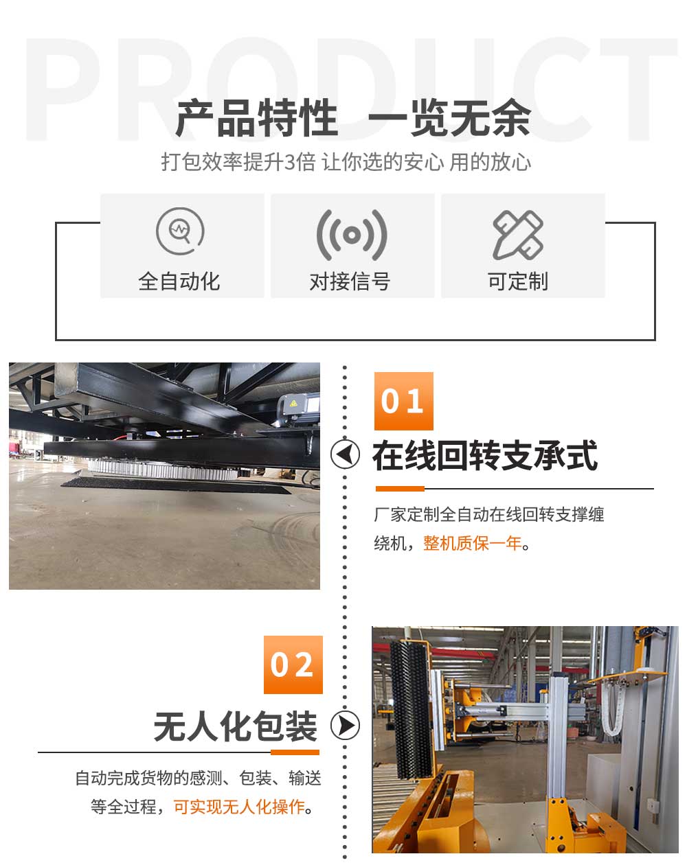 可根據不同的產品和現場的實際需求,定制不同的包裝系統,自動完成貨物的感測、包裝、輸送等全過程,