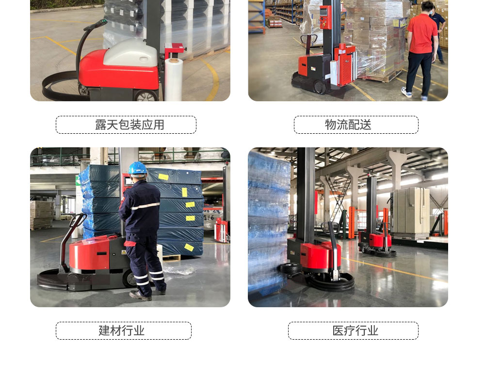 自走式纏繞機SCR-600不受貨物尺寸及重量限制,滿足各種不同形狀包裝物,自動化程度高,